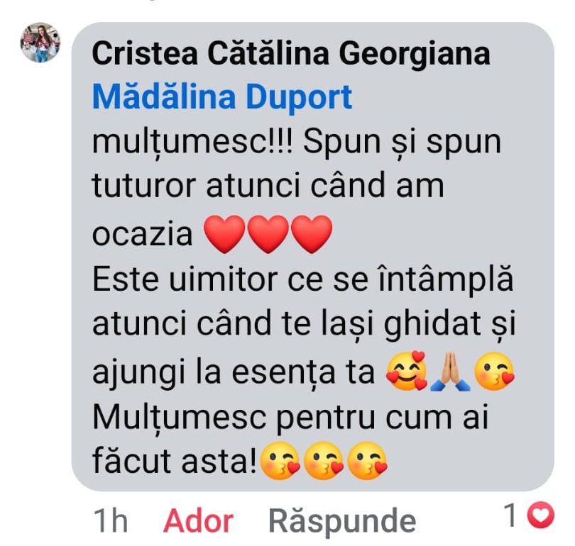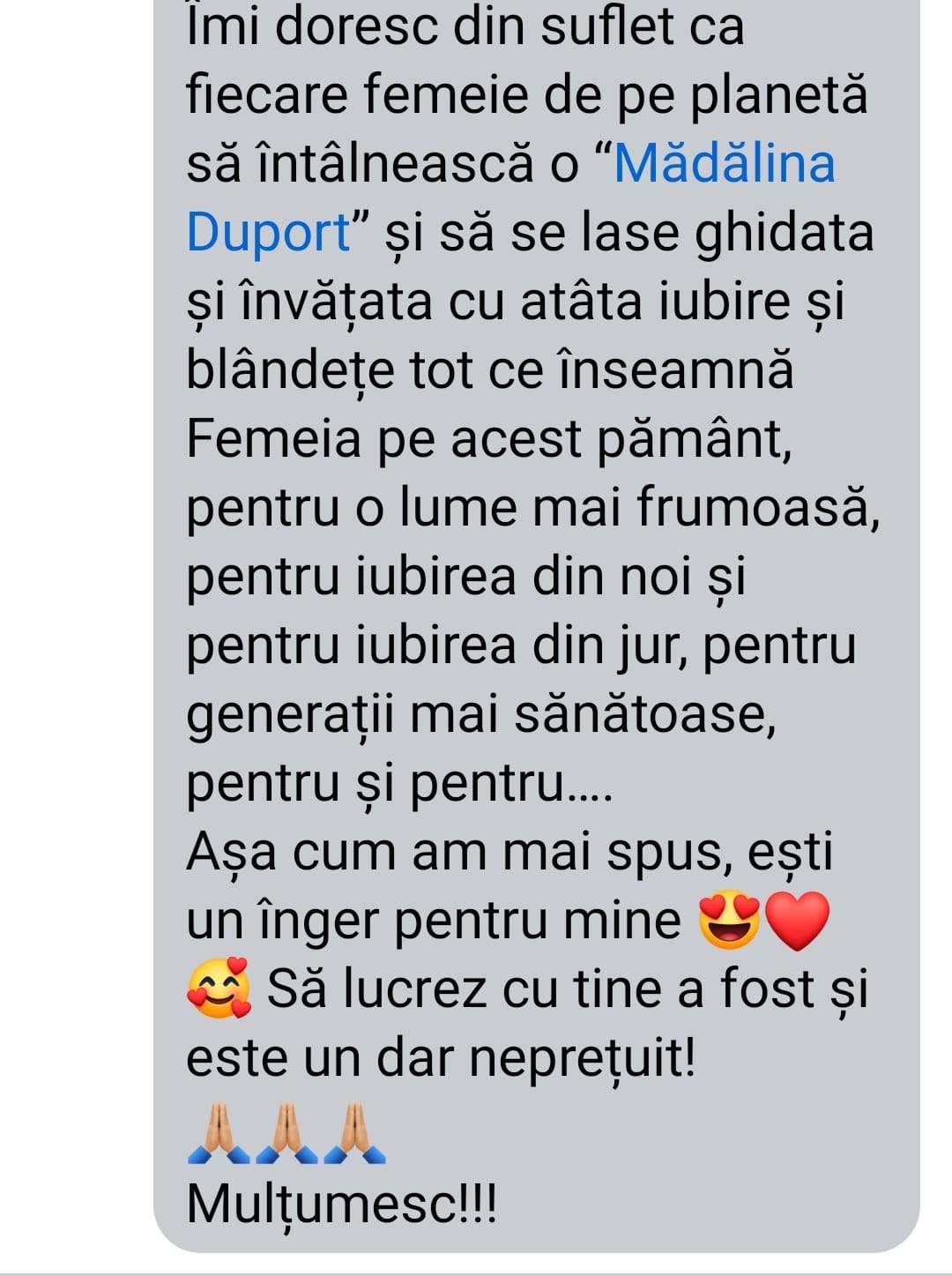 Mă numesc Mădălina și, în calitate de coach și terapeut, îmi dedic viața ghidării femeilor către descoperirea de sine și vindecare la nivel mental, emoțional, fizic și spiritual.